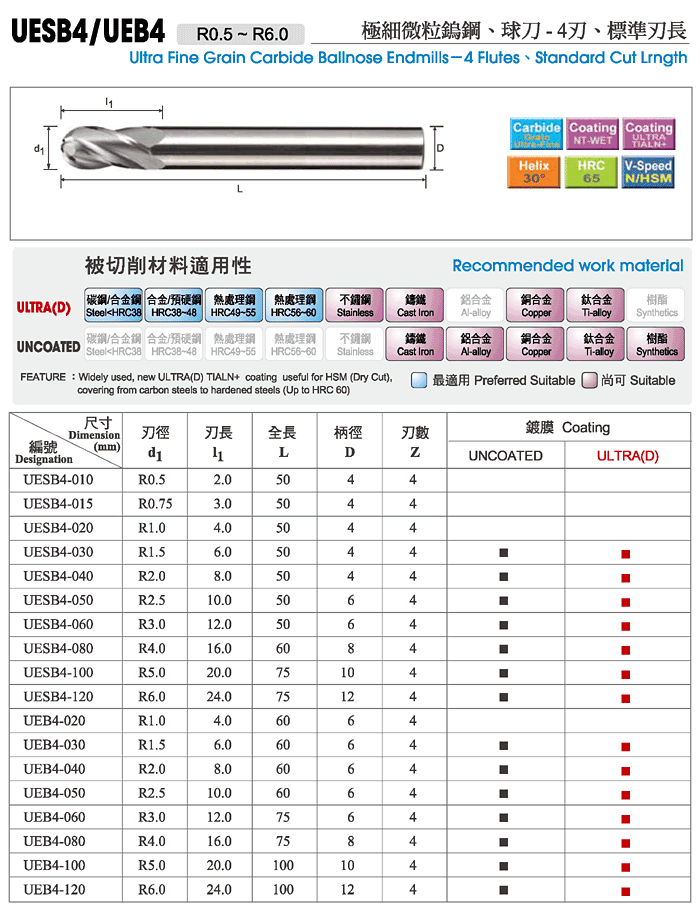 Type:UESB4 / UEB4 Size:R0.5~R6.0